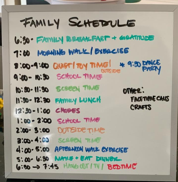 “My wife and I both work and have three kids, ages 3, 7, and 13, at the house now full time. We need to keep the kids busy enough to ensure they don't scream at each other all day, and leave us alone long enough to get our jobs done. The new FAMILY SCHEDULE and RULES have been extremely helpful!” - Walker